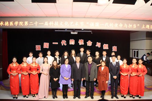 为庆祝改革开放四十周年,激励广大师生积极投入到新时代的发展浪潮当中,2018年11月6日下午,我校第二十一届科技文化艺术节“强国一代的使命与担当”主题演讲比赛决赛在图书馆八楼多功能厅举办。学校党委宣传统战部副部长周文娟,离退休人员管理处副处长王阳,原军事教研室主任、关心下一代工作委员会委员于群担任了此次的评委。 两位校园十佳歌手带来的开场歌曲《奔跑》唱出了承医青年的心声,把握青春、突破自我、不忘初心,在改革的新起点上追逐自己的梦想。随后十二位选手依次上台,他们字正腔圆,感情真挚,将自己的梦想与强国梦紧紧相连,将爱国之情与强国之志一同放飞。新时代,新使命,身属强国一代,就要具有强国一代的使命与担当。随着一波波的激烈演讲和此起彼伏的加油助威声,比赛进入了尾声,中医学院2017级赵文楚和基础医学院2018级路雨铜获得了本次比赛一等奖。 活动最后,于群老师为十二位选手进行了专业点评,并提出了自己对承医学子殷切希望。他说,每个人都有责任为国家的发展和繁荣做出奉献,承医学子应高举爱国主义旗帜,弘扬爱国主义精神,怀抱家国情怀,做一个有志的爱国青年,牢记使命,勇于担当。 陶冶高尚情操,展现青春风采。本次“强国一代的使命与担当”主题演讲比赛的开展,展现了承医学子奋发图强的斗志,体现了我校全体师生对迎评促建的积极响应。明确时代责任,高扬理想风帆,承医学子将不断提升政治觉悟和道德品质,牢记“爱国、励志、求真、力行”,努力成长为有理想、有本领、有担当的社会主义建设者和接班人。