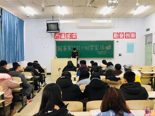 2018年12月4日是第5个国家宪法日,为深入贯彻党的十九大和十九届二中、三中全会精神,认真落实中央关于深入学习宣传和贯彻实施宪法的有关精神,引导青少年自觉成为宪法的忠实崇尚者、自觉遵守者、坚定捍卫者。2018年12月1日至12月4日,基础医学院2018级麻醉影像康复专业举行了“学宪法 讲宪法”暨“不忘初心跟党走,廉洁自律从我做起”系列活动。 本次活动以班级为单位,通过宪法晨读、主题班会、知识竞赛等形式,开展“学宪法 讲宪法”暨“不忘初心跟党走,廉洁自律从我做起”系列活动。在活动期间,同学们认真学习宪法的相关知识并做好相应的笔记,使每位同学深入了解了宪法、更加尊崇宪法,普及了宪法知识,弘扬了宪法精神,维护了宪法权威,增强了同学们的法治观念,形成人人学习宪法、人人了解宪法、人人维护宪法的浓厚意识,提高了大家的廉洁自律意识并进一步弥补了有关宪法的知识漏洞。 通过此次系列活动,同学们纷纷表示会忠于宪法,做学法知法遵法守法维护宪法的好青年,做到廉洁自律,坚守底线,以优秀团员的标准严格要求自己。同时,对自己的行为进行规范,好好学习,提升专业技能,为建设祖国美好未来做好准备。