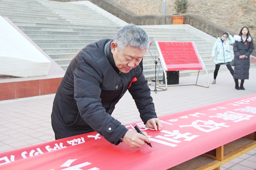 纪委书记张亚平出席活动现场并参与签名、宣誓活动 于多珠部长为活动致辞,他表示艾滋病防治工作是健康中国建设的重要组成部分,我校历来重视艾滋病防治工作并取得了明显成效,我们必须清楚认识到防治工作的艰巨性、长期性、特殊性和复杂性,并呼吁当代大学生在防艾宣传中承担起责任,为防艾事业做出贡献。团委李春阳副书记带领大家庄严宣誓,誓声铿锵有力彰显出我校师生志愿防艾的决心。宣誓完毕,领导、老师在横幅上签名并写下对青年防艾工作的寄语,随后同学们依次写下了对艾滋病患者的关怀与鼓励,并表示会积极向社会宣传艾滋病知识,为建设健康中国献力。