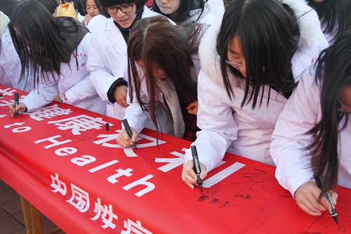 签名活动 此次活动在“世界艾滋病日”当天举办,鼓励当代大学生树立崇高理想,保持高尚的道德情操,自尊自爱,树立社会责任意识,培养文明健康的生活方式和正确的道德观。防治艾滋病,是重大的公共卫生问题和社会问题,是我们每一个人的职责和责任,让我们共同行动起来,用爱心托起红丝带、共筑全民防治艾滋病新的长城!