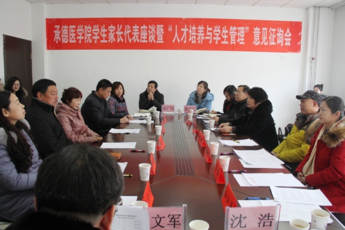 为了践行“以学生为本”的教育理念,推动家校联合,更好地为学生成长成才服务,2018年1月4日上午,学生处、教务处、中医学院联合在行政楼101会议室组织学生家长代表座谈暨“人才培养与学生管理”意见征询会,共邀请了杨献菊、赵静、宋秀华等11名学生家长参加此次征询会。教务处处长李玉红、中医学院院长梁广和、学生处处长沈浩和教务处、学生处相关工作人员及年级学生辅导员老师出席了此次会议。会议由学生处副处长张文军主持。