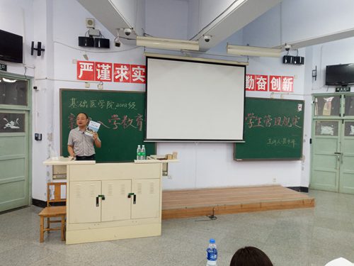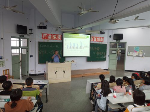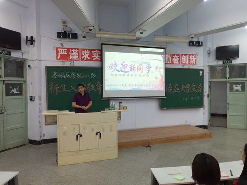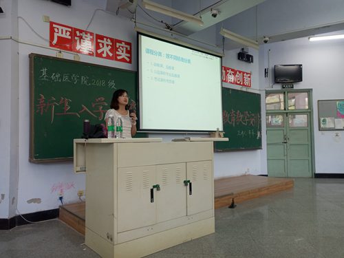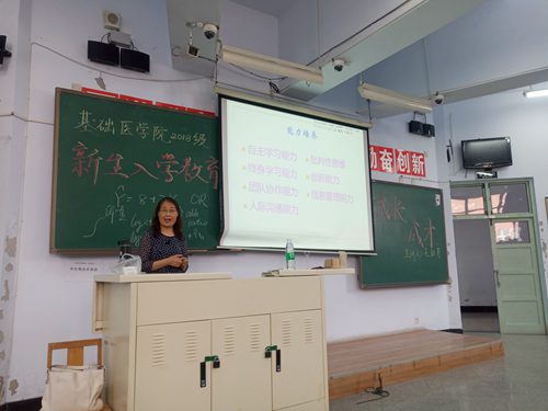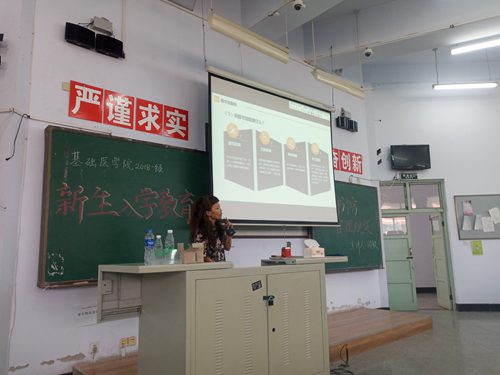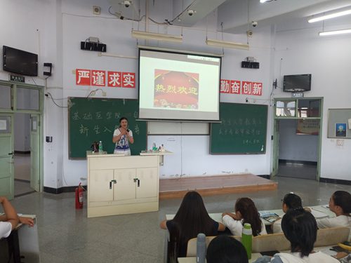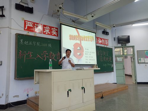 为了引导新生们感悟承医精神,尽快适应新的学习与生活环境,基础医学院于2018年8月30日-9月1日在教学楼开展为期3天的新生入学教育活动。学校党委宣传统战部部长于多珠、学生处处长沈浩、基础医学院院长毛淑芳、学生处副处长张文军、组织部副处级组织员龚理、心理学系副主任李晓敏、基础医学院党总支副书记李欣、教务科科长齐菲、学生科科长翟冰峰、宿舍教室管理科科长李小彬、安全工作处办公室主任杨济维、学校图书馆参考咨询部主任闫敏共计12名领导老师分别做了专题报告,基础医学院2018级全体专兼职辅导员、全体新生分三个场次参加了此次教育活动。 基础医学院从思想政治教育、安全意识、系情介绍、校规校纪教育、教育教学安排、职业生涯规划、心理健康等方面入手,扎实开展入学教育。于多珠部长为新生解读了习近平新时代中国特色社会主义思想的精华所在,讲述了承德地方史以及承德医学院校史,他鼓励青年学生“心中有信仰,脚下有力量”,秉着“艰苦奋斗,锲而不舍,求真务实,拼搏进取”的承医精神,争做社会主义合格的建设者和可靠接班人。沈浩处长从世界著名实业家、哲学家稻盛和夫的“六项精进”成功公式谈起,告诫学生无论遭遇何种苦难和逆境,都要不怨恨、不埋怨、不堕落,要积极面对人生,踏踏实实地努力,只要积极地活下去,路就会越走越宽。毛淑芳院长为新生详细介绍了承德医学院的办学特色、基础医学院概况、专业课程设置、专业培养目标及培养方案,并详细讲解了学校的教学方法和教学资源,让同学们对学校、学院、自己所学专业有了初步的认识和了解。张文军副处长从心态调整、目标规划、担当责任、培养能力等方面教导新生尽快适应大学生活。李欣副书记以即将到来的本科教学工作审核评估为讲述主线,鼓励学生做全面发展的“承医人”。龚理老师为新生们详细讲解了党的基本理论知识、入党条件、端正入党动机的重要性、党员的权利及义务和发展党员的流程,并对全体新生提出了殷切希望。李晓敏副主任结合我校大学生的心理健康状况,分别对大学生压力应对、学习心理、人际交往、恋爱与性、自我意识、危机干预等心理问题进行了深入浅出的讲解,帮助学生树立心理健康观念、识别心理异常现象、正视常见心理问题、掌握基本的应对技能。齐菲科长为新生详细讲述了学生所属专业的课程设置、考试安排、学分制等内容,为懵懂的大一新生指明了前进的方向。翟冰峰科长结合学生手册为新生做了学生管理规定的报告,结合实例提醒大家了解校规校纪各项要求;严格遵守学术道德,莫存侥幸心理;诚实守信、严于律己,勇于争先,在做合格“承医人”基础上,成为优秀“承医人”。李小彬科长从学校宿舍教室管理规定出发,对新生提出了维护宿舍教室清洁、文明、安全的希望。杨济维老师结合案例详细讲解了网络诈骗、校园财产安全、人身安全、校园稳定、消防逃生等方面的防范要求和注意事项,提醒大家加强安全知识学习,进一步提升安全意识,严格防范各类安全事件发生,平安顺利地度过大学阶段的学习生活。闫敏主任详细地介绍了图书馆各楼层的藏书以及借阅图书的途径、方法和规则,同时希望同学们能充分利用图书馆的资源,好读书,读好书,提升自身综合素质。 此次全方位的入学教育不仅使新生对学校环境、教学、学习、生活等各方面的情况有了初步的了解和认识,也让新生在此基础上能够更好地规划大学学习目标,为同学们能够度过丰富多彩的大学生活奠定了基础,更重要的是大学生懂得必须在思想上懂政治、讲政治,在同学们接下来的学习、工作、生活中,我们将以学生为本,全心全意为学生成长成才服务,为中国特色社会主义事业培养更多合格建设者和可靠接班人。