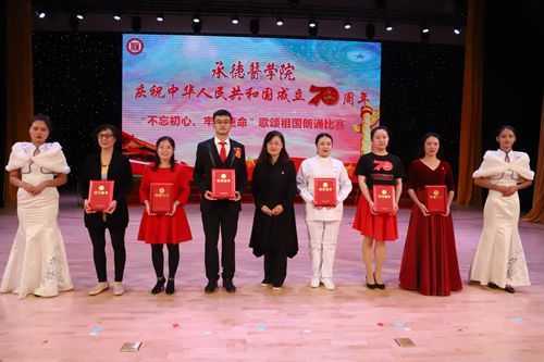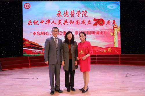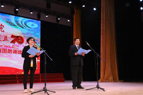 用美丽的诗歌赞美祖国,用优美的韵调吟诵祝福。2019年10月10日下午,庆祝中华人民共和国成立70周年“不忘初心、牢记使命”歌颂祖国职工朗诵比赛在学校会堂隆重举办。我校党委副书记张学良莅临本次活动。党委宣传统战部部长于多珠,党委办公室主任于淑华,工会常务副主席、离退休人员管理处处长王艳丽,学生处副处长张文军,中华诵读联合会会员、诵读艺术导师、原中药学系辅导员老师苏丙凡,原军事教研室主任于群担任评委。师生代表500余人观看了比赛。