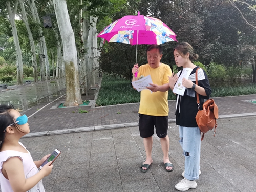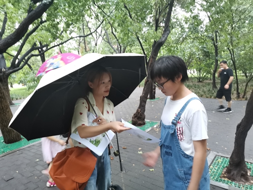 第二分队在社区进行宣传 第二小分队在邯郸市社区广场、雄安新区政府广场、文昌公园等地进行宣讲活动。为大家介绍此次活动的目的,详细为市民们介绍平时生活中可以力所能及的事,呼吁大家为建设美丽中国贡献自己的力量,将绿色作为发展底色,把生态环境保护放在更加突出的位置,像保护眼睛一样保护生态环境,坚决摒弃一切破坏生态环境的发展模式,实现经济社会发展与生态环境保护的共赢。