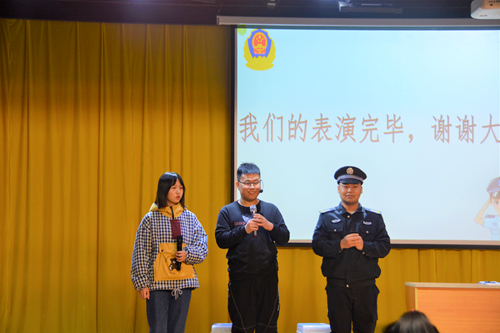 评委老师认真观看 本次比赛采取现场表演的形式,各团队按抽签顺序上台表演。十个团队的表演均令人印象深刻,其中五号团队作品《金盆洗手前》和十号团队作品《诈骗风波》以小品的形式,运用欢乐搞笑的风格,结局的反转告诫大家要警惕电话诈骗。三号团队作品《天下掉下点金钱》和四号团队作品《认亲》提醒大家要抵制金钱的诱惑。一号团队作品《虚拟之恋》和九号团队作品《畸形的爱》为同学们敲响警钟,网络聊天需警惕,网恋需谨慎,要提高鉴别能力。 李牧乘为本次比赛进行点评:各团队扣题精准,编剧独具匠心,主题突出,在完美演绎网络电信诈骗形式的同时深究其根本,具有警示作用。李牧乘引用意大利美学家克罗齐的话“人是天生的诗人” “直觉即表现”指出各团队的表演展现了当代大学生的青春风貌。最终,董硕、刘薇等人获得一等奖;侯彦竹、岳静、崔新蕊等人获得二等奖;韩佳丽、秦浦康、徐美慧、王馨悦、李蔚然等人获得三等奖。 本次活动的举办不仅丰富了校园文化生活,向我校学生宣传了网络诈骗知识,更凸显了承医学子积极进取、不断创新的精神风貌。网络诈骗,层出不穷;网络诱惑,陷阱重重。面对生活中的骗局,我们应保持警惕之心,远离网络诈骗;抵制金钱诱惑,筑牢安全防线。