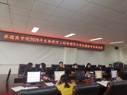 我校增设的生物医学工程专业自2016年开始招生,学制四年,学位授予门类工学,2020年首届毕业生38人。根据河北省人民政府学位委员会《河北省普通高等学校增列学士学位授予单位及新增学士学位授权专业审核办法》(冀学位[2014]7号)的有关规定,2020年我校应申请新增生物医学工程专业为学士学位授权专业,且各高校在提交新增学士学位授权专业申报材料前,需组织校内专家对申报材料进行评审。 为进一步促进我校生物医学工程本科专业建设和发展,保证2020届毕业生学位授予工作的顺利进行,2020年4月8日下午2:30,我校在行政楼312会议室召开生物医学工程新增学士学位授权专业申报材料论证会。学校教学督导组、高等医学教育研究室、教务处三部门领导组成的专家组及生物医学工程系相关人员参加了会议。 论证会上,生物医学工程系副主任张平简要介绍了申报材料的撰写过程,并从师资队伍建设、课程设置、实践教学等方面汇报了生物医学工程专业的总体情况。经论证,与会人员一致认为,我校生物医学工程专业符合本科专业类教学质量国家标准,培养目标符合我校办学定位,专业课师资队伍、课程设置、实验实习、实验室条件能够满足培养目标,达到人才培养方案对学生知识、技能、综合素质等方面的要求,符合新增学士学位授权条件,同意申请将生物医学工程专业增列为学士学位授权专业。 生物医学工程学士学位授权专业的如顺利获批,将使我校的学士学位授予门类增加至三个,也将为我校加快建成有特色有影响的医科大学奠定坚实的基础。