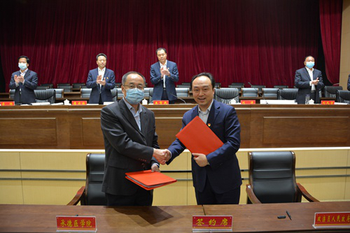 2020年9月,我校与科技厅、燕山大学共同签署厅校会商协议,即《河北省科技厅 燕山大学 承德医学院2020-2022年科技创新合作协议书》。科技厅将提供500万元的专项经费用于支持学校优势领域科技创新、高端科技创新平台和医工交叉平台建设、科技成果转移转化。我校也将与燕山大学在多个领域开展深度合作。
