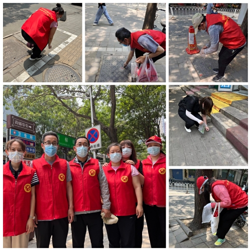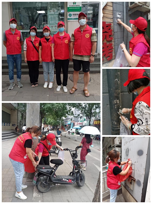 6月17日上午,基础医学院李砚超、范彦芳、赵明洋、米术斌、勾语境、高杨在双柳街附近开展志愿服务