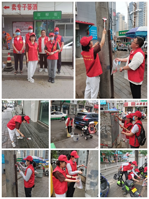 6月22日上午,临床学院张宝川、张伟、周腾飞,工会、离退休管理处石艳华、戴杰、杨莹在双柳街志愿服务