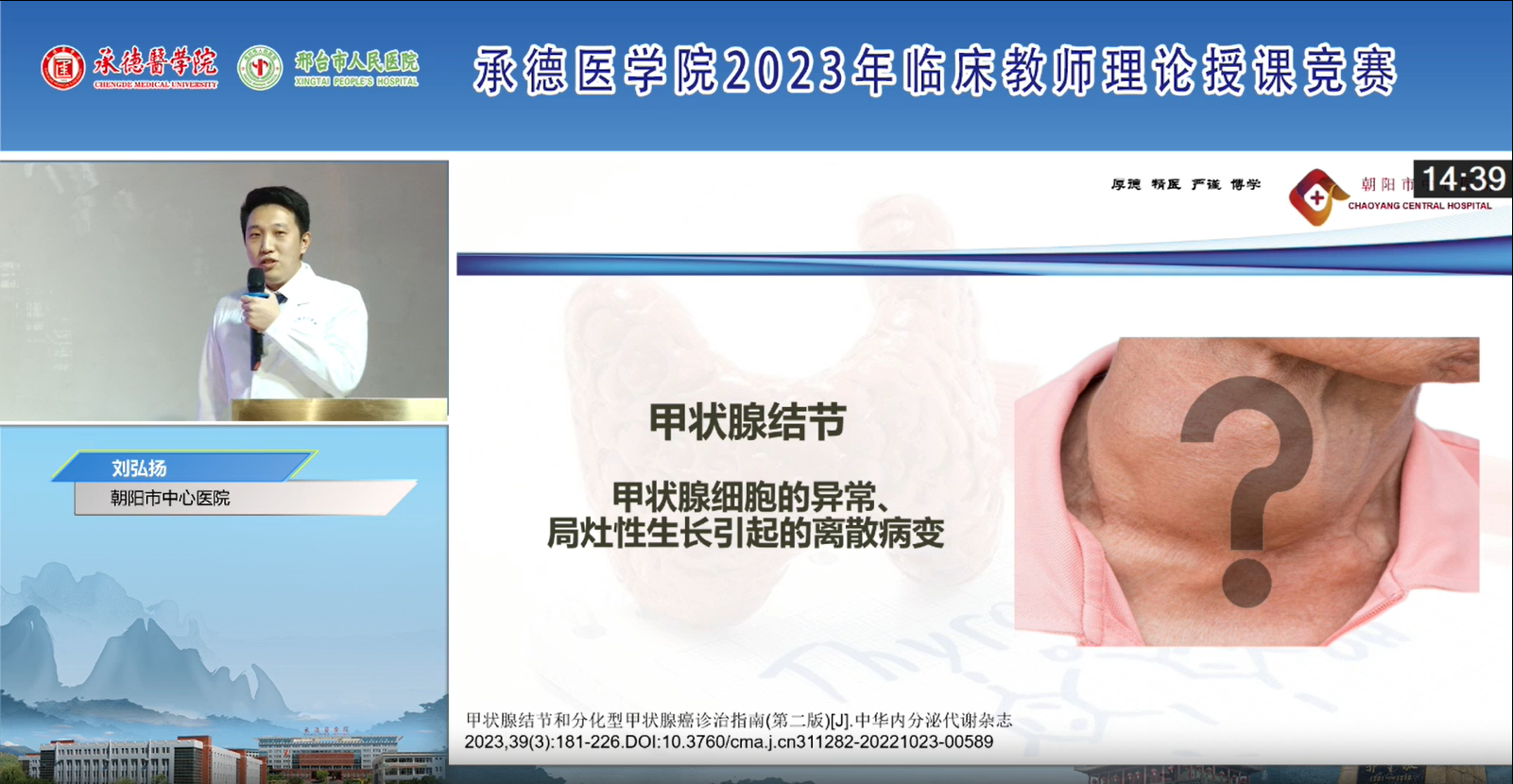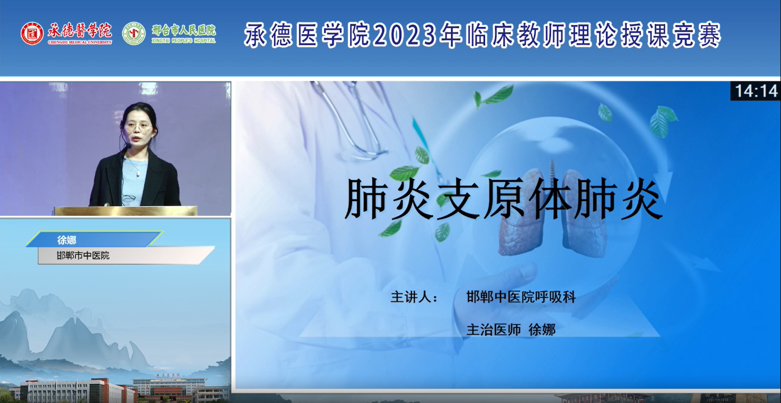 为进一步加强我校临床师资队伍建设,提高临床教师教学水平和技能,展现各教学基地的教学风采,培养教学热情,促进临床教学质量整体提升,2023年12月2日至3日,我校举办了2023年临床教师理论授课竞赛,本次大赛由邢台市人民医院承办。 (点击每张图片即可查看原图)