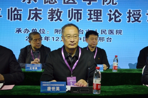 党委副书记、校长唐世英出席竞赛开幕式并致辞 本次竞赛是历届赛事中规模最大,影响最广泛的,共计158人参加,有来自邢台市人民医院、承德医学院附属医院、承德市中心医院、朝阳市中心医院、保定市第二医院、保定市第二中心医院、保定市第一中心医院、沧州市人民医院、衡水市人民医院、邯郸市第一医院、秦皇岛市第一医院、承德市中医院、邯郸市中医院、联勤保障部队第九八一医院14家医院54名参赛选手同台竞技,还有以上医院和天津市北辰区中医医院、天津市滨海新区中医医院共计58名教师观摩授课。