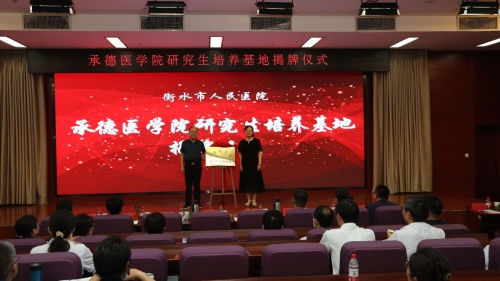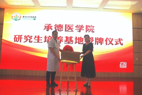 研究生学院院长陈志宏和衡水市人民医院党委书记郑辉为我校临床医学硕士专业学位研究生培养基地揭牌