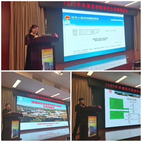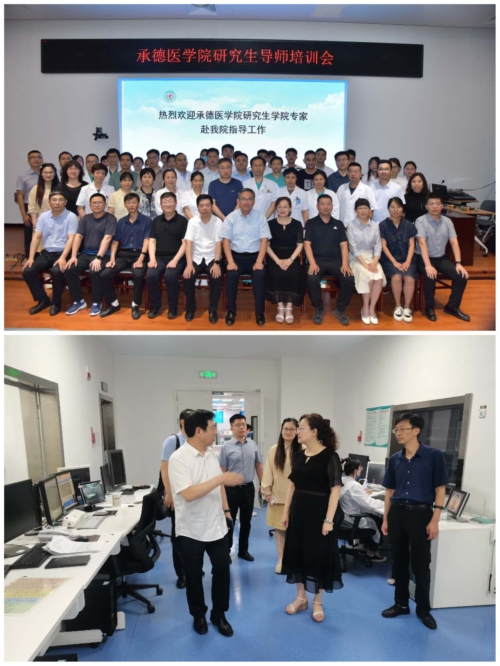 2023年7月14日至17日,研究生学院院长陈志宏、党委书记苗光新、副院长杨松鹤、党委副书记王悦婷等一行6人赴衡水市人民医院、衡水市中医医院、邢台市人民医院举行我校研究生培养基地揭牌仪式暨研究生导师培训会。 在衡水市人民医院,院长曹双清致欢迎词,对我校一行表示热烈欢迎。陈志宏和衡水市人民医院党委书记郑辉为我校研究生培养基地揭牌。衡水市人民医院副院长崔朝勃做了《衡水市人民医院研究生基地情况汇报》,详细介绍了医院概况及研究生培养情况。陈志宏、苗光新、杨松鹤分别以《研究生导师指导行为准则》《加强研究生培养中的科学道德与学风建设》《临床医学硕士专业学位研究生培养制度》为题进行硕士研究生导师培训。随后,我校一行6人检查了衡水市人民医院研究生培养条件、学生管理情况、学生心理档案及研究生实验记录等。与在衡水市人民医院研究生进行座谈,深入了解研究生的学习、生活情况。 (点击每张图片即可查看原图)