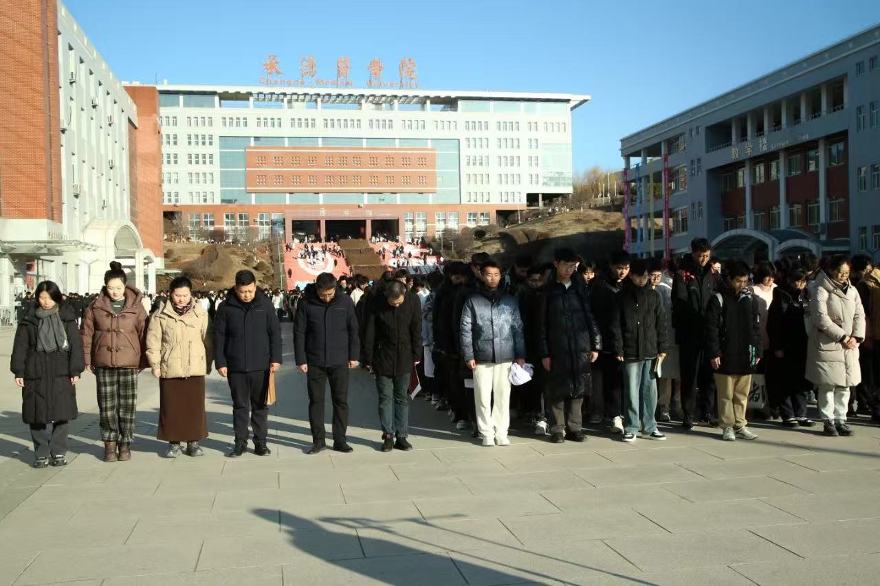 为祭奠在南京大屠杀中遇难的30余万同胞,向革命先烈及民族英雄致以崇高的敬意,教育引导承医学子缅怀英烈,勿忘国耻,铭记历史,珍爱和平,2024年12月13日,我校于教学楼前明德广场举行2024年南京大屠杀死难者国家公祭日悼念活动。各职能部门负责人、各院(系)师生代表参加本次活动。 (点击每张图片即可查看原图)