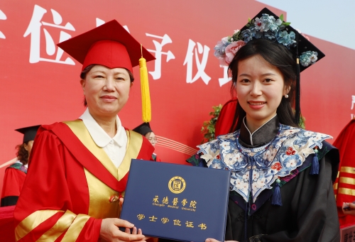 学校党委书记盛婉玉等校领导为毕业生代表颁发毕业生证书