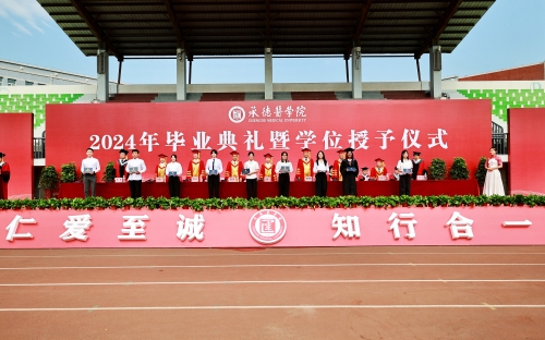 学校党政办公室主任于淑华主持毕业典礼 上午8时,迎着朝阳,毕业典礼在嘹亮的国歌声中拉开序幕。翟玉建宣布学校2024届本科毕业生名单。李玉红宣布授予2024届学士学位授予决定。郝长来宣读荣获2024届河北省优秀毕业生名单。与会领导为毕业生代表颁发毕业证书和学位证书,扶正流苏;为优秀毕业生代表颁发荣誉证书。毕业生代表手捧鲜花上台,向教学科研人员、学生辅导员、保安员、宿管员、餐饮服务人员、后勤服务保障人员等育人岗位上的教职员工代表献花,感谢他们的辛勤付出,表达对他们的感恩之心。2024届全体本科生为母校赠送司母戊纪念鼎,铭记学校的悉心培育和老师的辛勤付出。