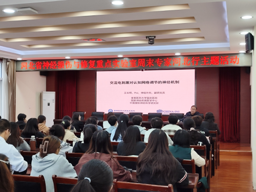 王长明作题为《交流电刺激调节老年认知障碍额叶-海马连接的神经机制研究》的专题报告,详细介绍了交流电刺激是如何对额叶-海马连接进行调节,生动讲解了经颅交流电刺激技术通过影响大脑神经细胞电活动的同步化和去同步化从而调节大脑皮质的兴奋性和大脑功能。与会师生纷纷表示收获良多,受益匪浅。 本次讲座不仅为我校师生搭建了学术沟通与交流的平台,拓展了师生们的学术视野,营造了良好的学术氛围,同时也为推动重点实验室科研创新做出了积极贡献。
