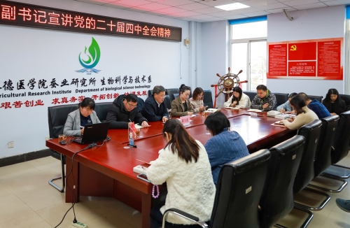 学校党委副书记翟玉建宣讲党的二十届四中全会精神 翟玉建系统阐释和深入解读了党的二十届四中全会精神的丰富内涵与核心要义。他指出,“十五五”规划建议为中国未来五年发展擘画了清晰蓝图,是朝着2035年基本实现社会主义现代化目标迈进的关键一步。结合学校实际,翟玉建重点围绕“推动科技创新与产业创新深度融合”“一体推进教育、科技、人才协同发展”等内容进行了详细阐述,强调坚持好、运用好“六个坚持”重要原则,是贯彻落实全会精神、科学编制实施“十五五”规划的内在要求和实践指引。 翟玉建强调,蚕业研究所作为立足京津冀蒙、服务特色蚕桑产业的重要科研单位,必须深刻把握全会精神,主动对接国家战略与产业发展需求,紧密围绕学校建设医科大学总目标,积极服务高质量发展和现代化产业体系建设,不断提升对地方和行业的贡献水平。他提出三点要求:一是聚焦科技自强自立,全面增强创新动力;二是服务产业优化升级,投身“东绸西固”新发展格局;三是加强人才队伍建设,筑牢事业发展的根基。殷切希望蚕业研究所全体教职工将科研工作与国家发展同频共振,真正“把论文写在祖国大地上”。