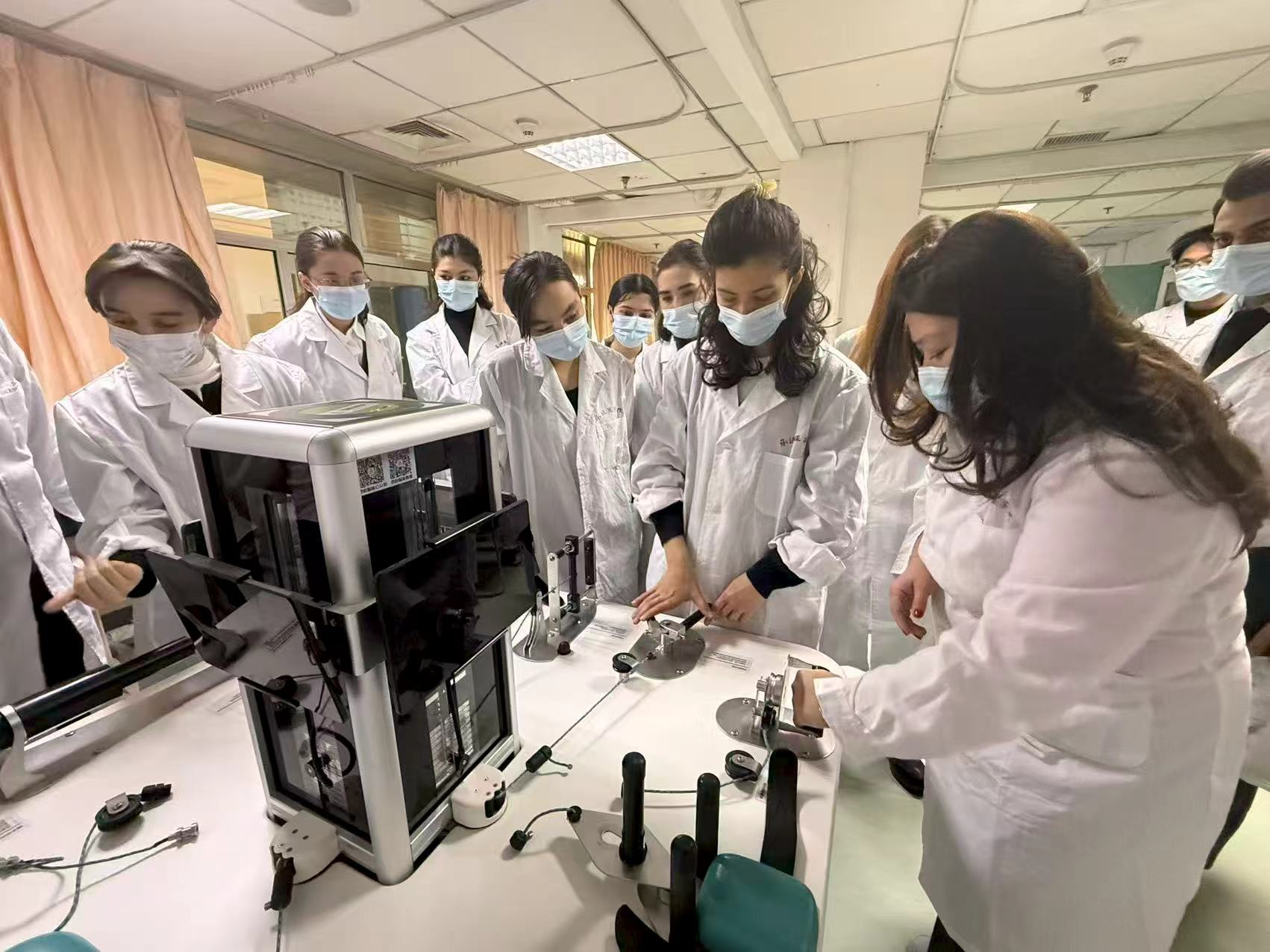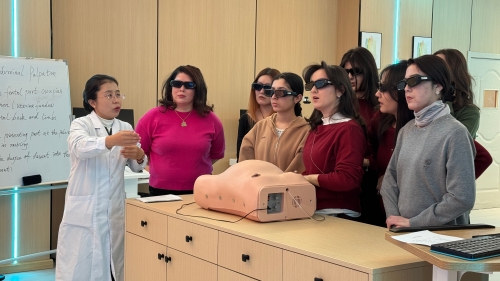 乌兹别克斯坦kimyo国际大学研学团欢迎和开班仪式 1月8日上午,研学团赴我校附属医院开展交流活动。来访师生们参观了复合手术室、消化内镜中心与康复医学治疗中心,对医院临床教学工作给予高度评价。