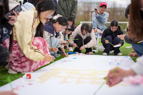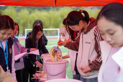 大型彩虹跑活动 传统工艺、美育与心灵疗愈相融的特色体验备受欢迎。“纨素绘彩漆,扇间拾心光”漆扇制作活动中,同学们以水为媒、以漆为笔,在沉浸式手工中感受传统工艺魅力,舒缓内心情绪;“彩沙筑梦,妙瓶生花”活动中,大家用彩沙分层创作沙瓶画,将心愿与期许融入瓶中,在色彩搭配中表达内心情感,收获治愈与成就感;“以画会友,共抒心声”活动中,同学们在画布上自由涂鸦、协作创作,用画笔倾诉心声、传递温暖;“心灵展板・温暖同行”活动现场,大家在便利贴上写下祝福话语与情绪调节小妙招,张贴展板传递善意。手印、漆扇、沙瓶、画布、暖心便签,共同定格这场治愈心灵的美好旅程。
