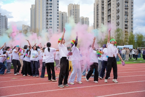 印下彩色手印 启动仪式后,“心灵之旅”系列特色活动同步开展,现场氛围热烈温馨。“心随彩虹共奔跑,梦与青春共飞扬”大型彩虹跑活力开跑,同学们迈着轻快步伐穿越彩虹门,彩粉飞扬间尽显青春朝气,在奔跑中释放压力、舒展身心。