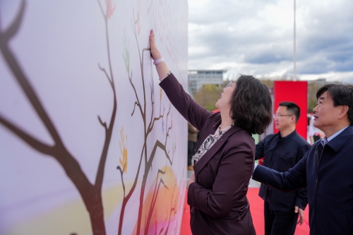 开幕式现场 开幕式以动感欢快的手势舞《向快乐出发》燃情启幕。李玉红为开幕式致辞。她指出,今年是学校建设高水平医科大学的关键之年,学校始终坚持五育并举、健康第一的育人理念。她围绕构建“大心育”格局、深化“心育+实践”、筑牢“心防线”体系三个方面提出殷切希望,并预祝本次心理健康节圆满成功。现场领导、老师们依次在心理健康手印墙上留下代表健康与朝气的彩色手印,我校第十九届“5·25”大学生心理健康节就此隆重开幕。