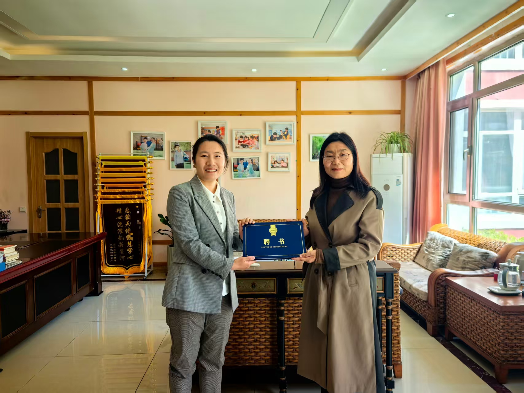 授予行业导师聘书 随后,考察团前往北京朗心致远科技有限公司(涿州)。董事长刘本永、副总经理于跃等热情接待。考察团参观了企业展厅,体验了数智化心理设备,深入了解了心理学与人工智能融合的前沿动态。座谈会上,销售经理王岚介绍企业现状与发展规划,人事经理时圆圆分享了员工福利、职业发展路径及岗位能力标准,培训组组长、我校2023届优秀校友陈璐围绕母校育人特色与岗位胜任力匹配度、职业发展情况进行了汇报,并感恩母校的培养。校企双方就联合育人、提升就业意识及前置宣讲等议题展开深入交流。